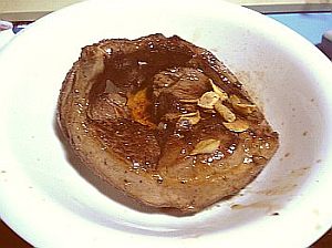 オリーブオイルでにんにくを焼いてから肉を焼きましたとさ。