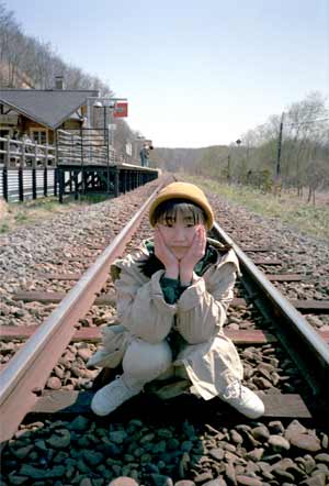 24コマの想い出これを見たら彼女は怒るかな。これでも顔が見えにくいのを選んだ んだけど。高校の修学旅行にぼくはCANONの小さなハーフカメラを両親に 頼み込んで借りて持っていった。今でもどうしてキチンと撮れ ていたのか不思議なくらいのフルマニュアルなカメラ。 24コマのフィルムで4本。ハーフだから200枚近い写真を見た 両親は口に出さなかったけれど、ちょっと不安に思ったと思う。 友人との楽しそうな写真なんて全然少なくて、仏閣や観光地の、 写真ばかり、しかも教科書に載ってそうな。 思えばこの頃から、記録写真なんて興味がなくて。あえて友人が 入らないタイミングでシャッターを切ってた。 多分、これが今まででたった24コマの、自分が撮りたいと思って、 とった記録写真。2ヶ月ぶりの彼女がちょっととまどった、緊張した 感じの視線を投げかけている、そんな、10年も前の想い出。 あ、ちゃんと駅員さんに許可を得て線路に降りたんだよ。 1991/5/3 釧路湿原駅にて KONICA BIG Mini(両親に借りた) |